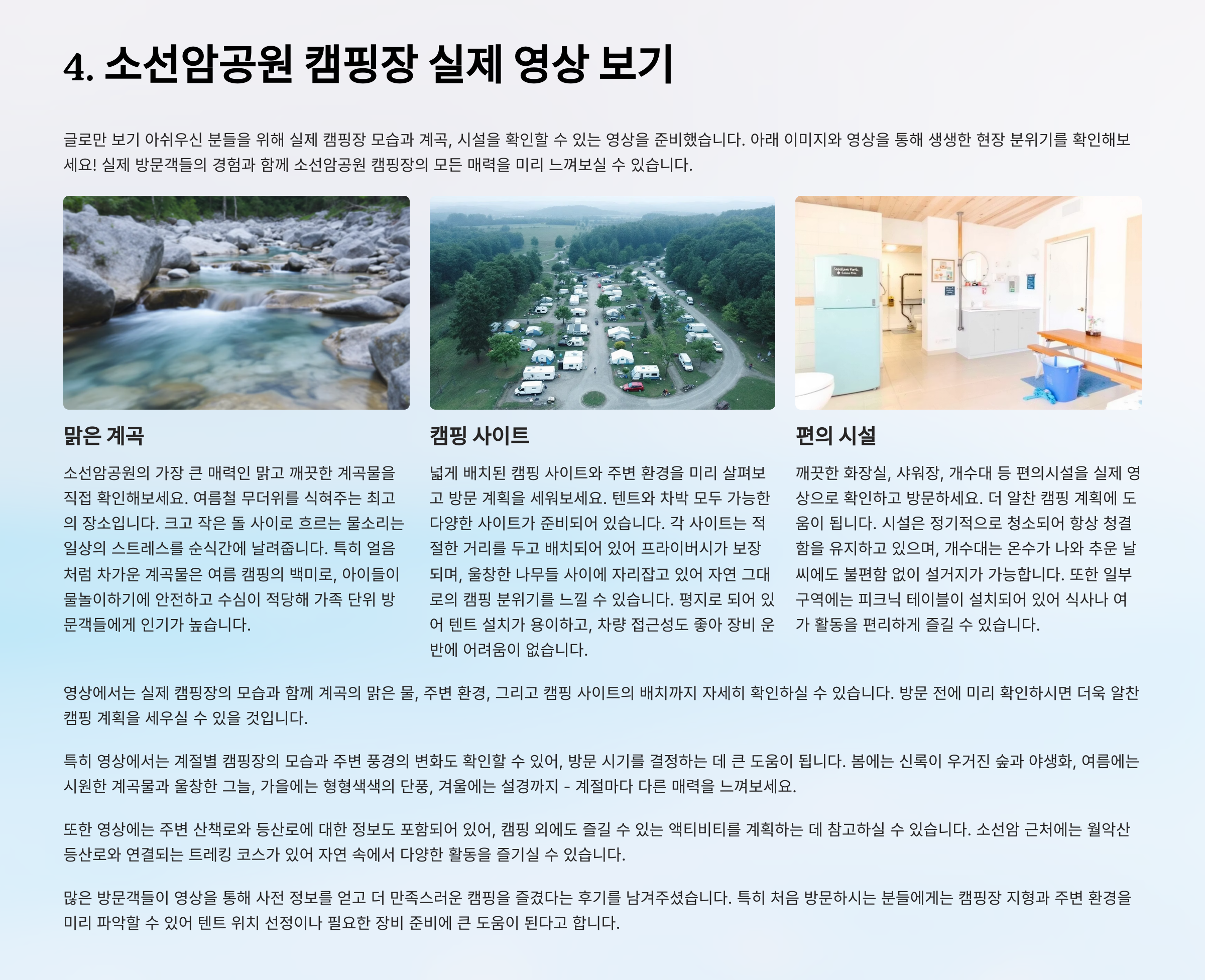 4. 소선암공원 캠핑장 실제 영상 보기