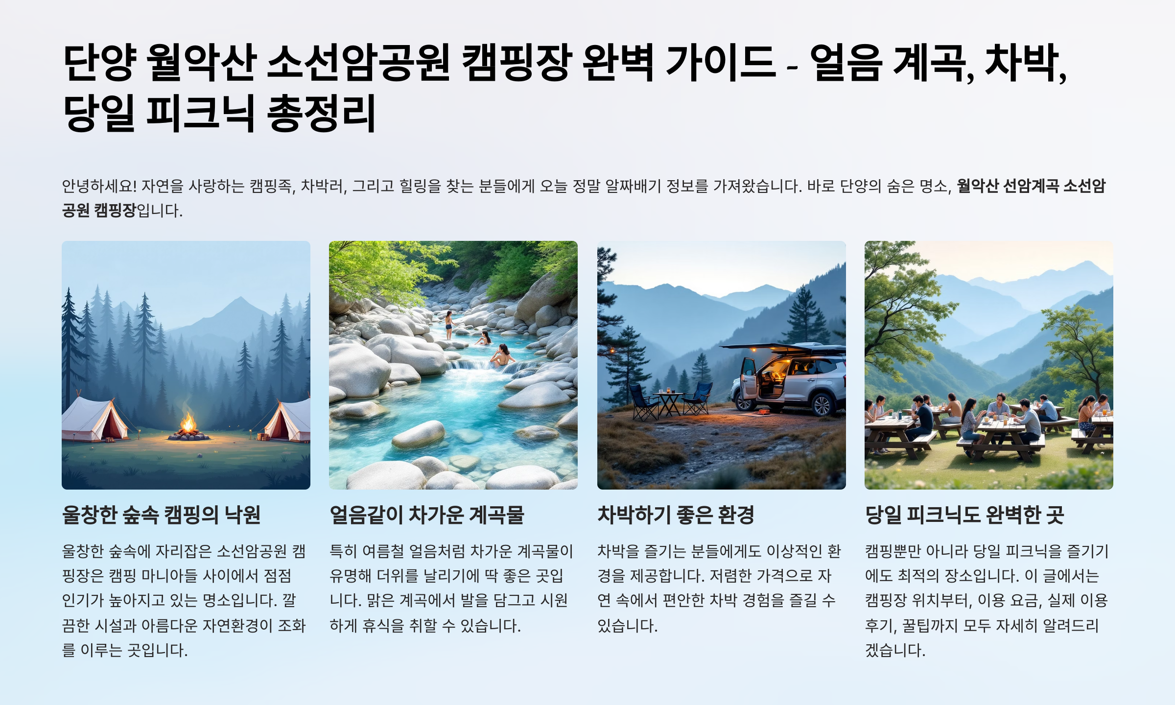 단양 월악산 소선암공원 캠핑장 완벽 가이드 - 얼음 계곡, 차박, 당일 피크닉 총정리