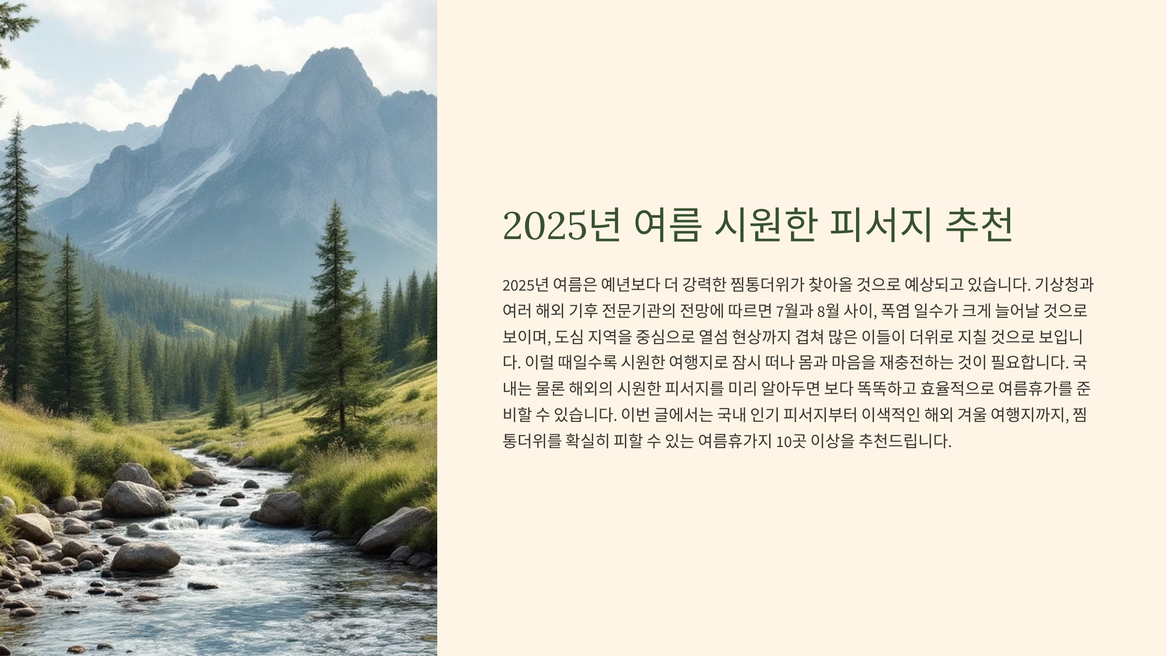 다가오는 2025년 여름, 똑똑하게 시원한 여행지를 선택해 무더위를 피해 보세요.