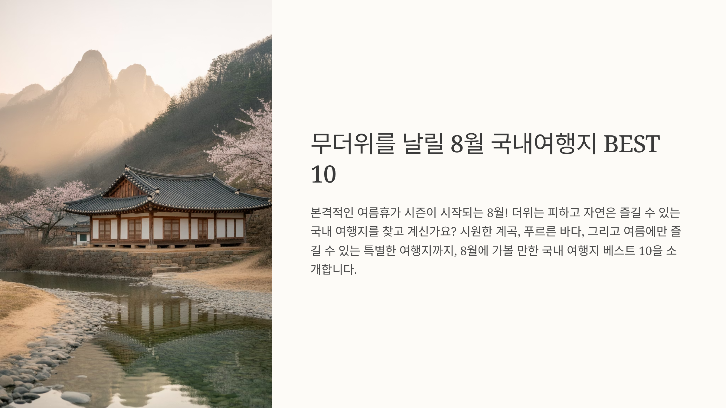시원한 계곡, 푸르른 바다, 그리고 여름에만 즐길 수 있는 특별한 여행지까지, 8월에 가볼 만한