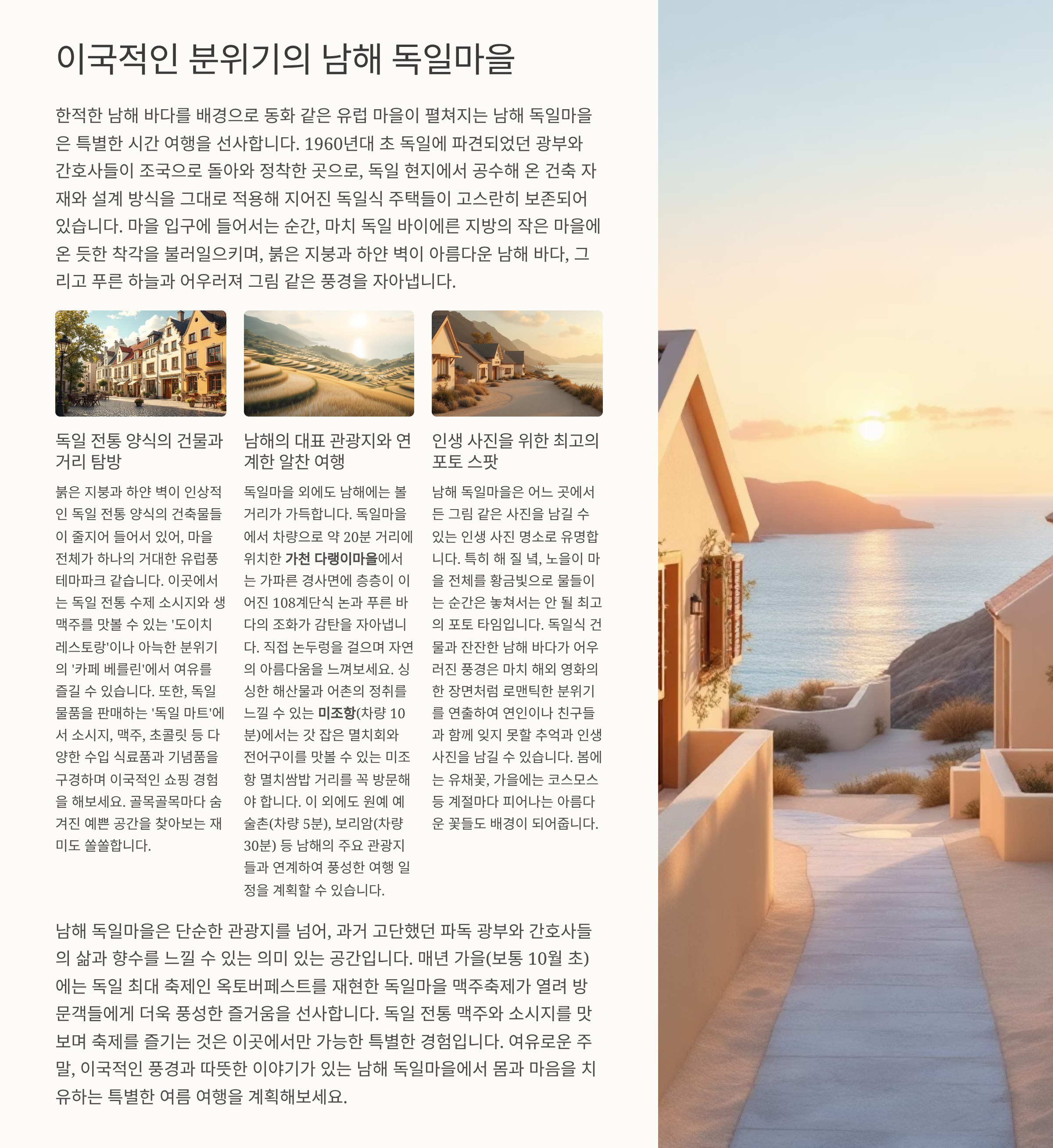 독일식 건물과 남해 바다가 어우러진 풍경은 마치 해외에 온 듯한 기분을 줍니다.