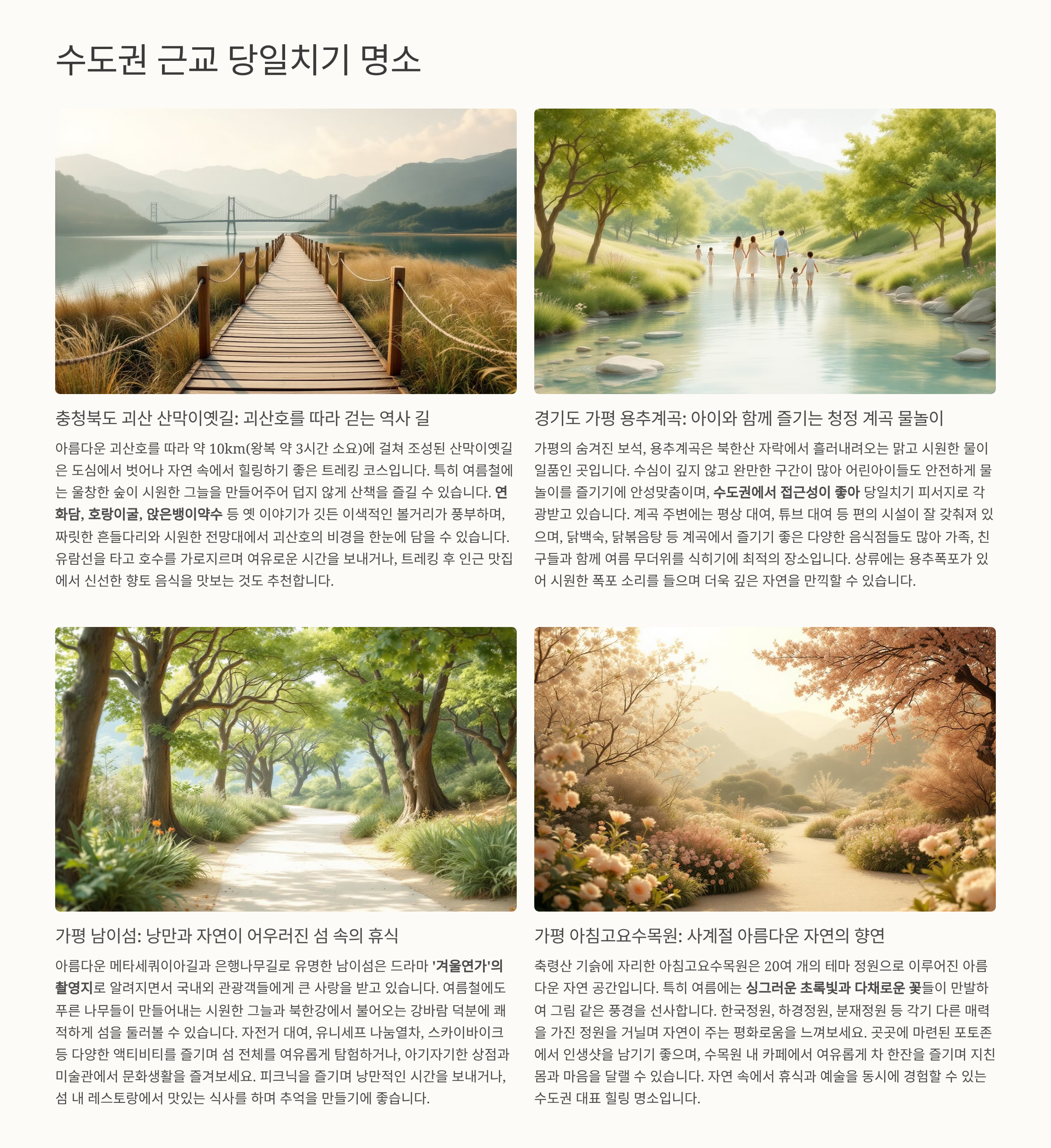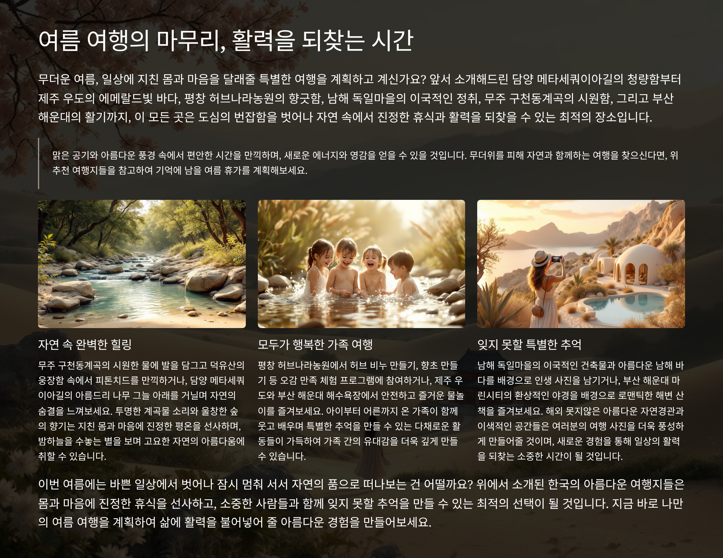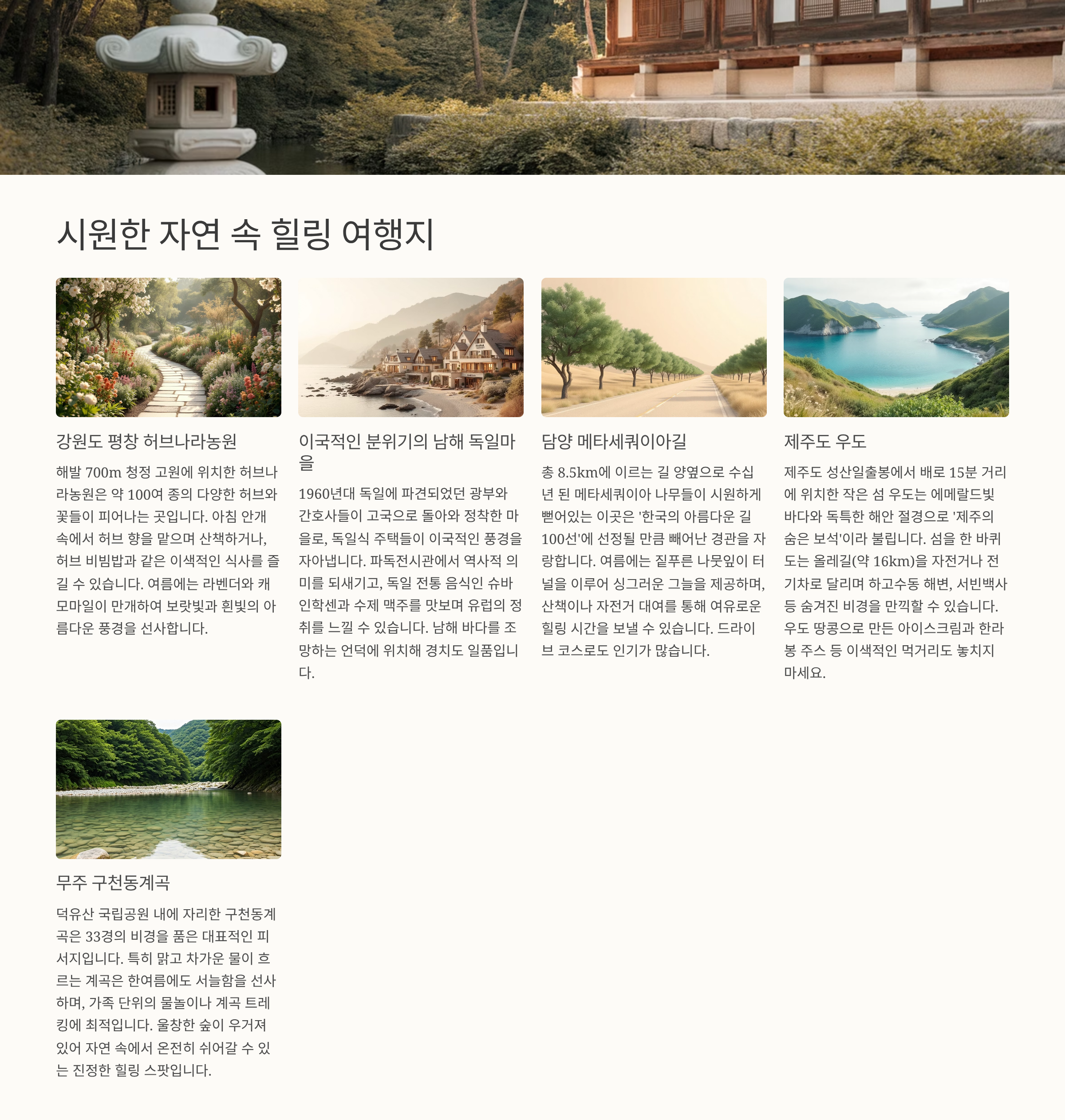 무더위를 피하면서 자연과 함께하는 여행을 원하신다면, 위의 여행지들을 참고해 보세요.