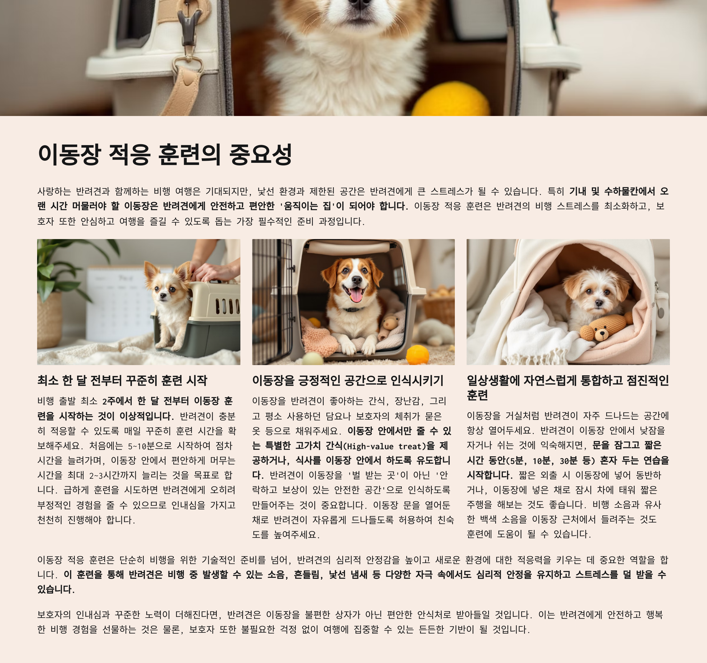 그러나 영상에서 소개된 3가지 핵심 사항만 잘 준비해도, 반려견에게 덜 불편하고, 보다 안전한 항공 여행이 될 수 있습니다.
