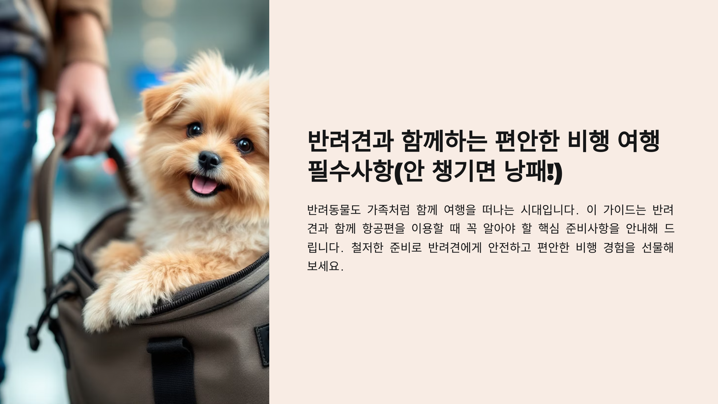 이번 글에서는 유튜브 영상 “반려견과 비행기 타기 전에 꼭 챙겨야 할 3가지!”에서 소개된 내용을 토대로, 보호자가 반드시 준비해야
