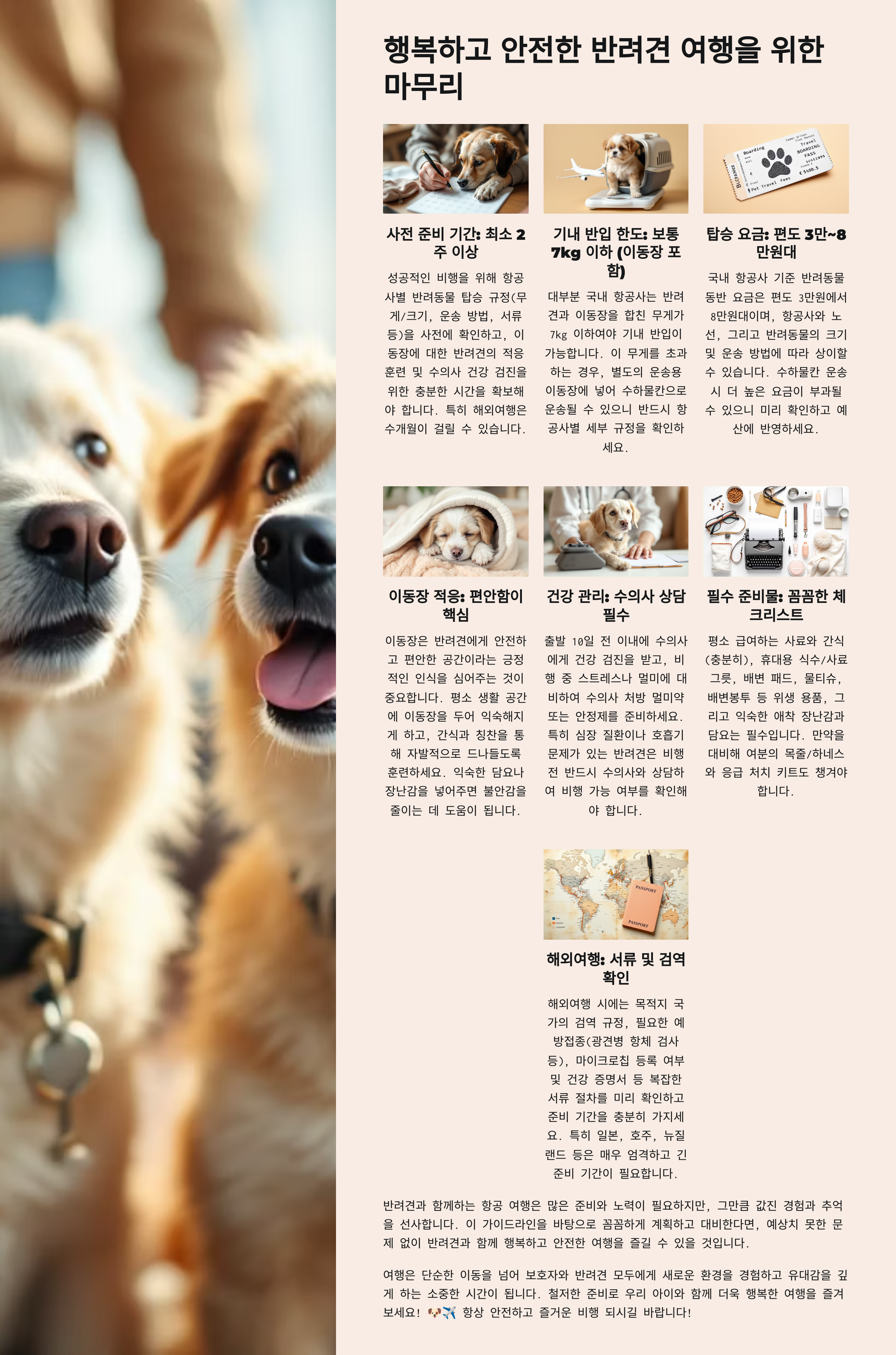 - ✈️ 반려견 기내 반입 가능 여부 및 체중 제한