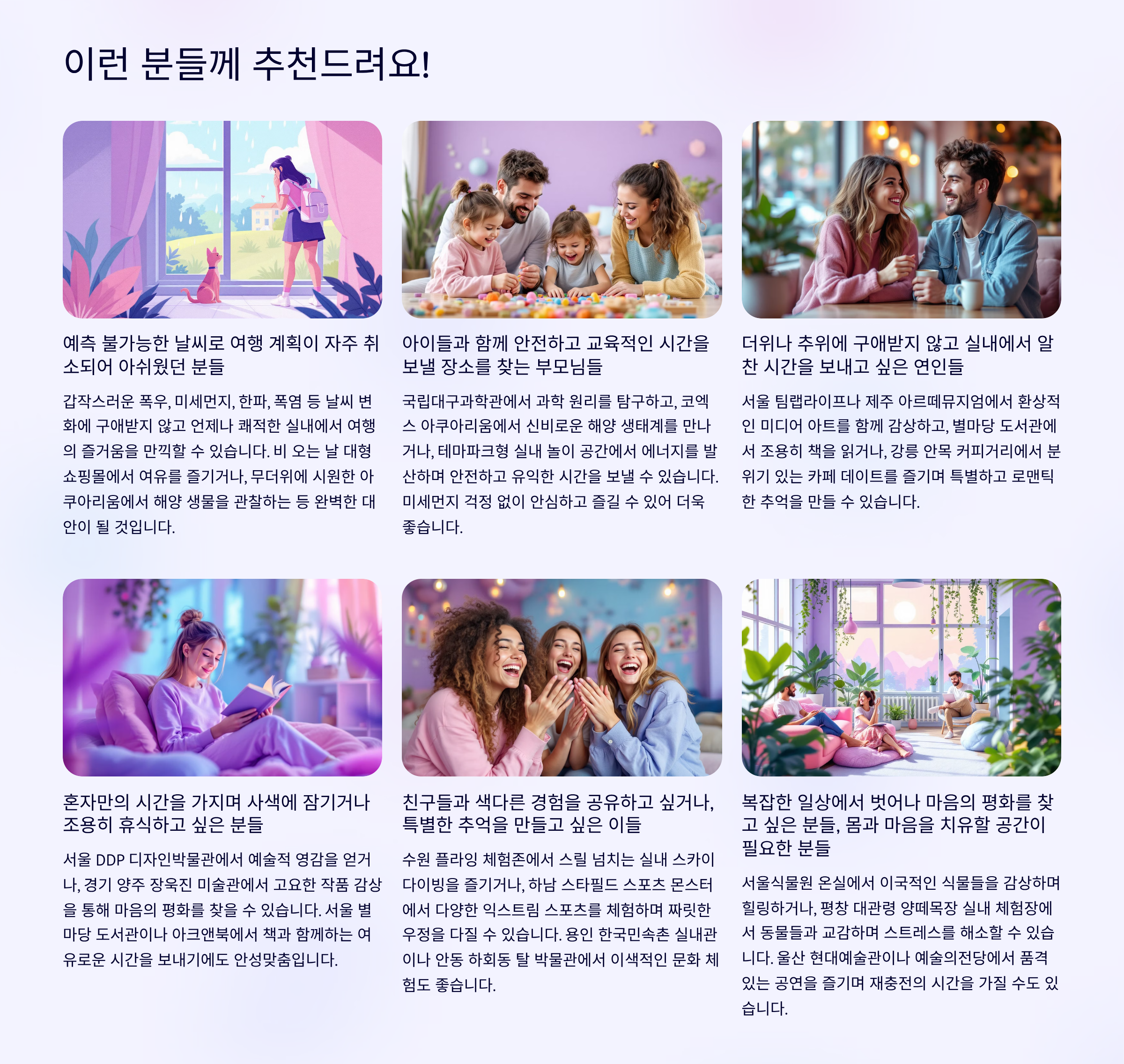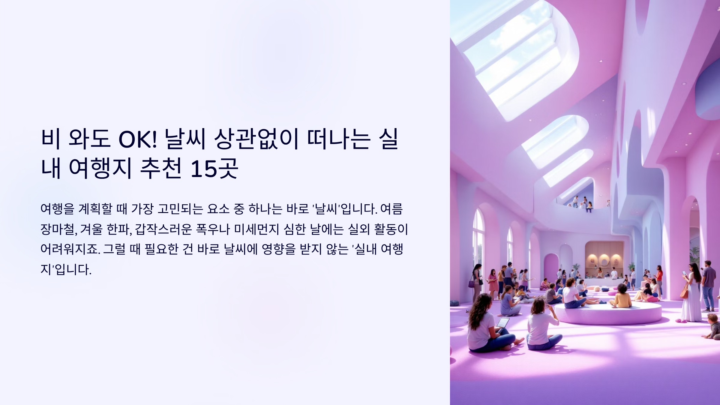 📅 날씨 상관없이, 실내여행으로 마음껏 떠나자!