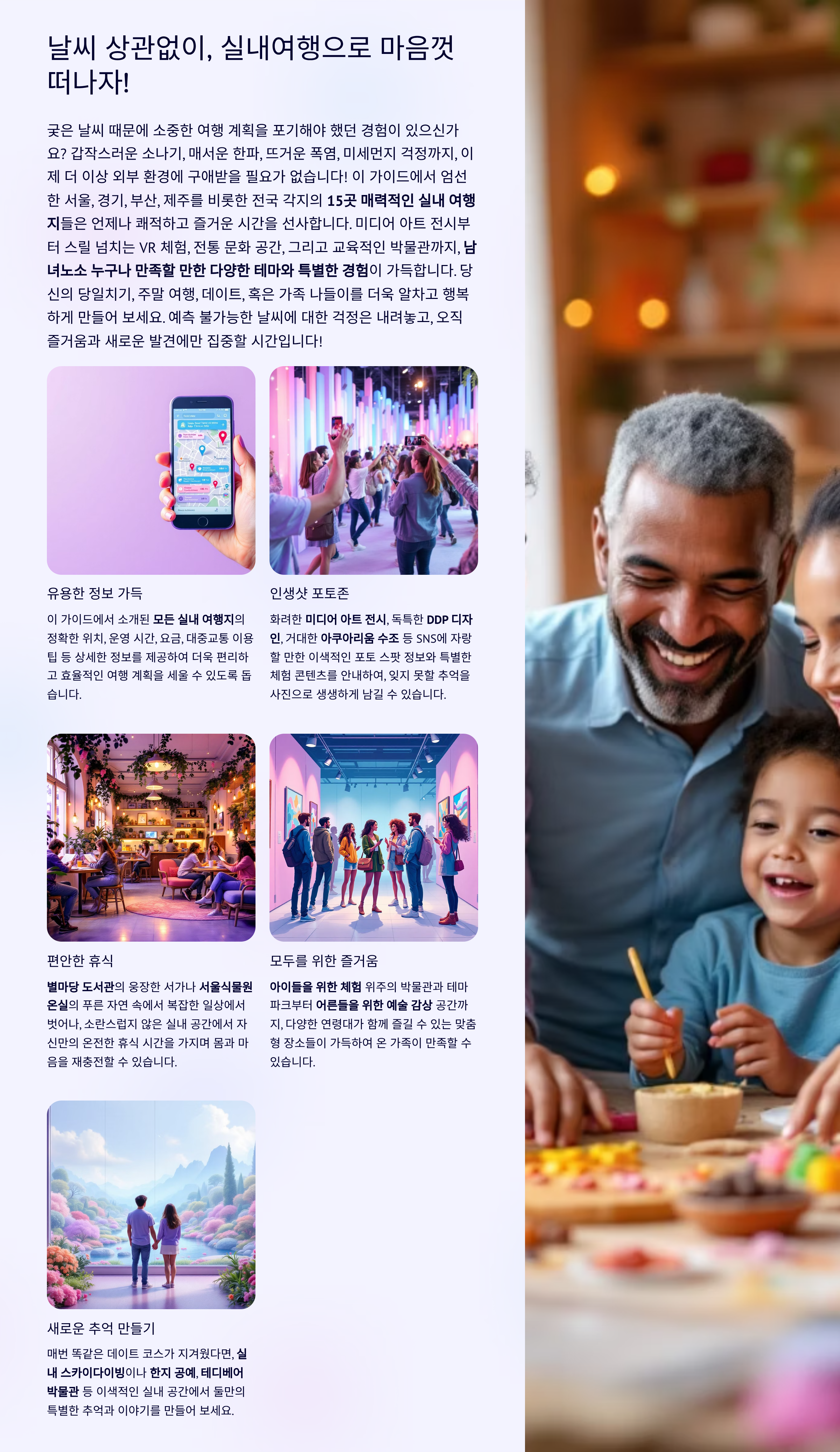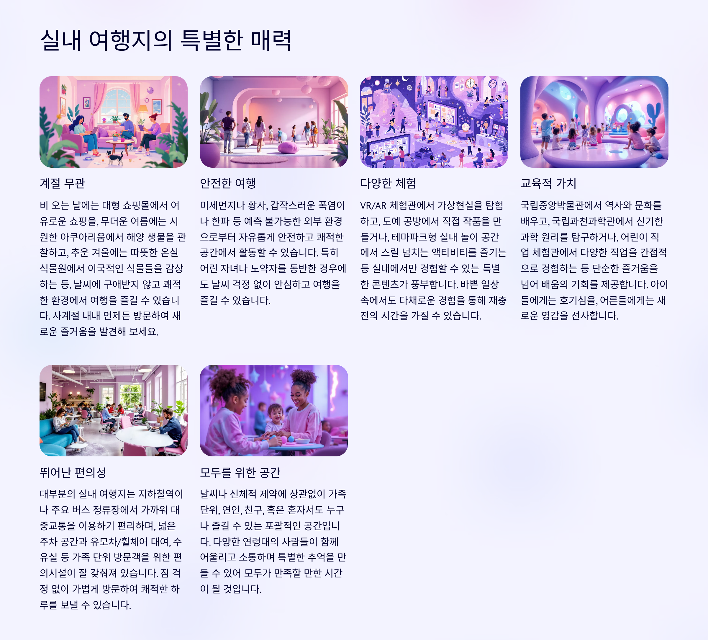 실내 여행지는 단순히 날씨를 피하는 공간이 아닙니다.