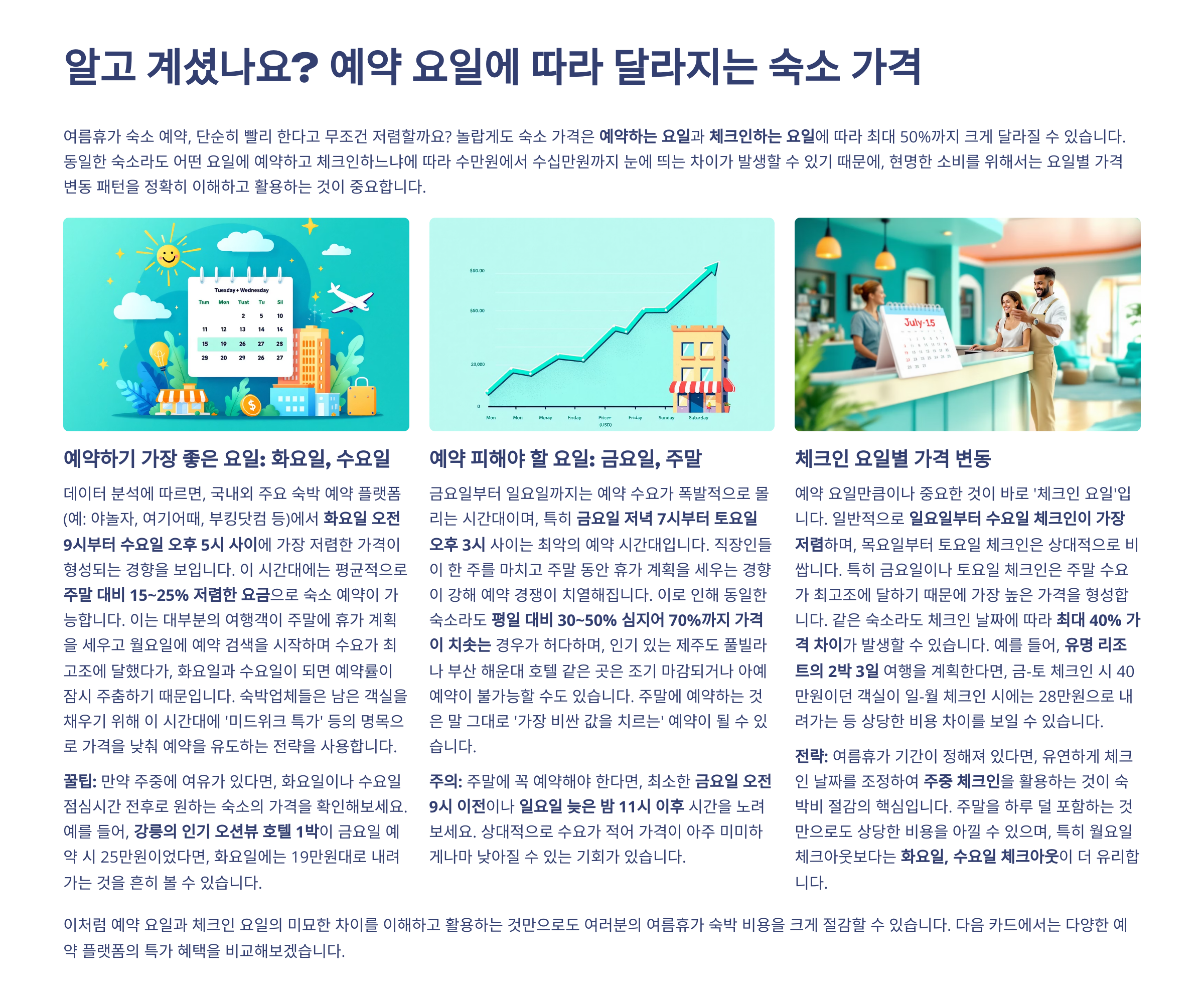 숙소 예약은 단순히 '어디서 묵을까?'가 아니라, '언제, 어떻게 예약할까?'도 함께 고려해야 하는 시대입니다.