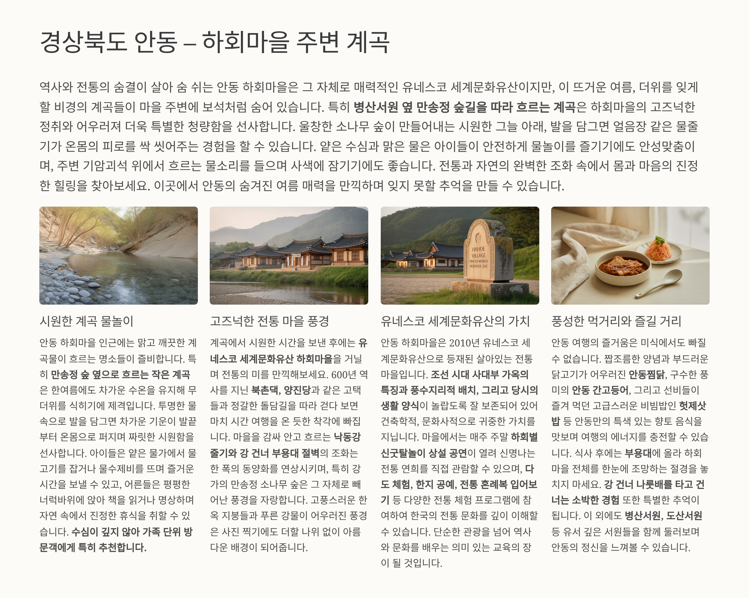 3. 경상북도 안동 – 하회마을 주변 계곡