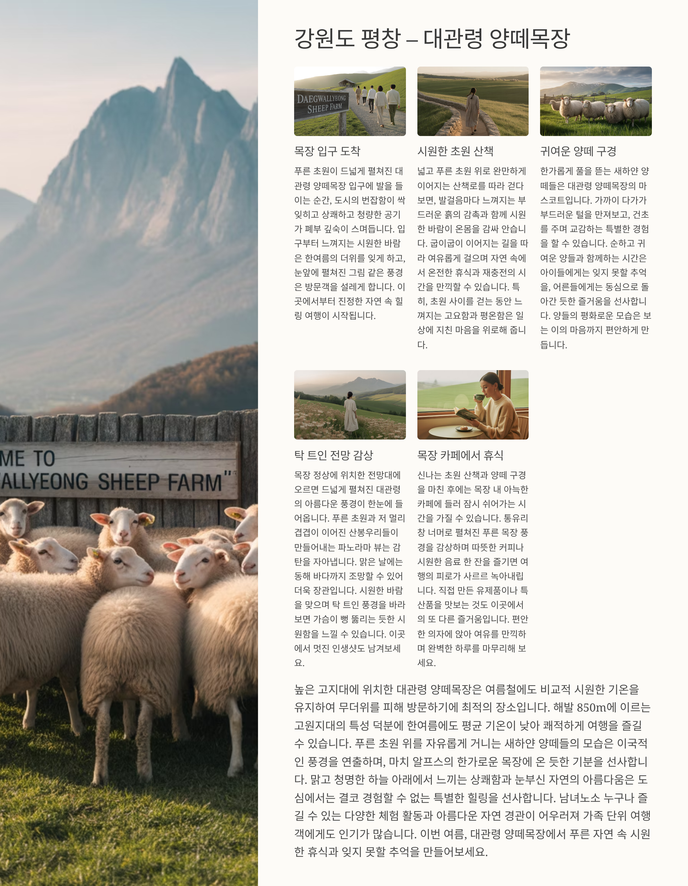 높은 고지대에 위치한 대관령 양 뗏목장은 여름에도 시원한 기온을 자랑합니다.