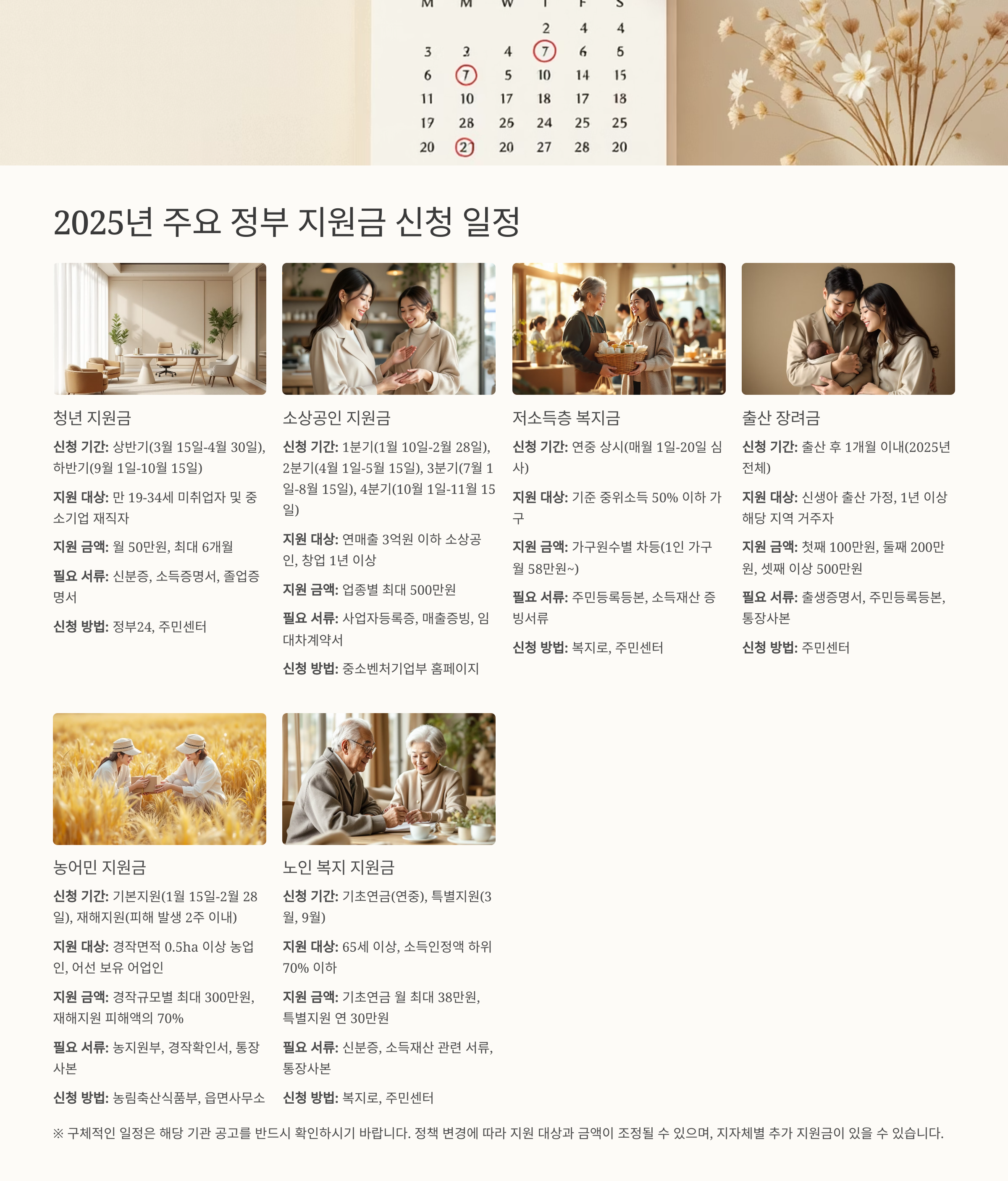 2025년 주요 정부 지원금 신청 일정