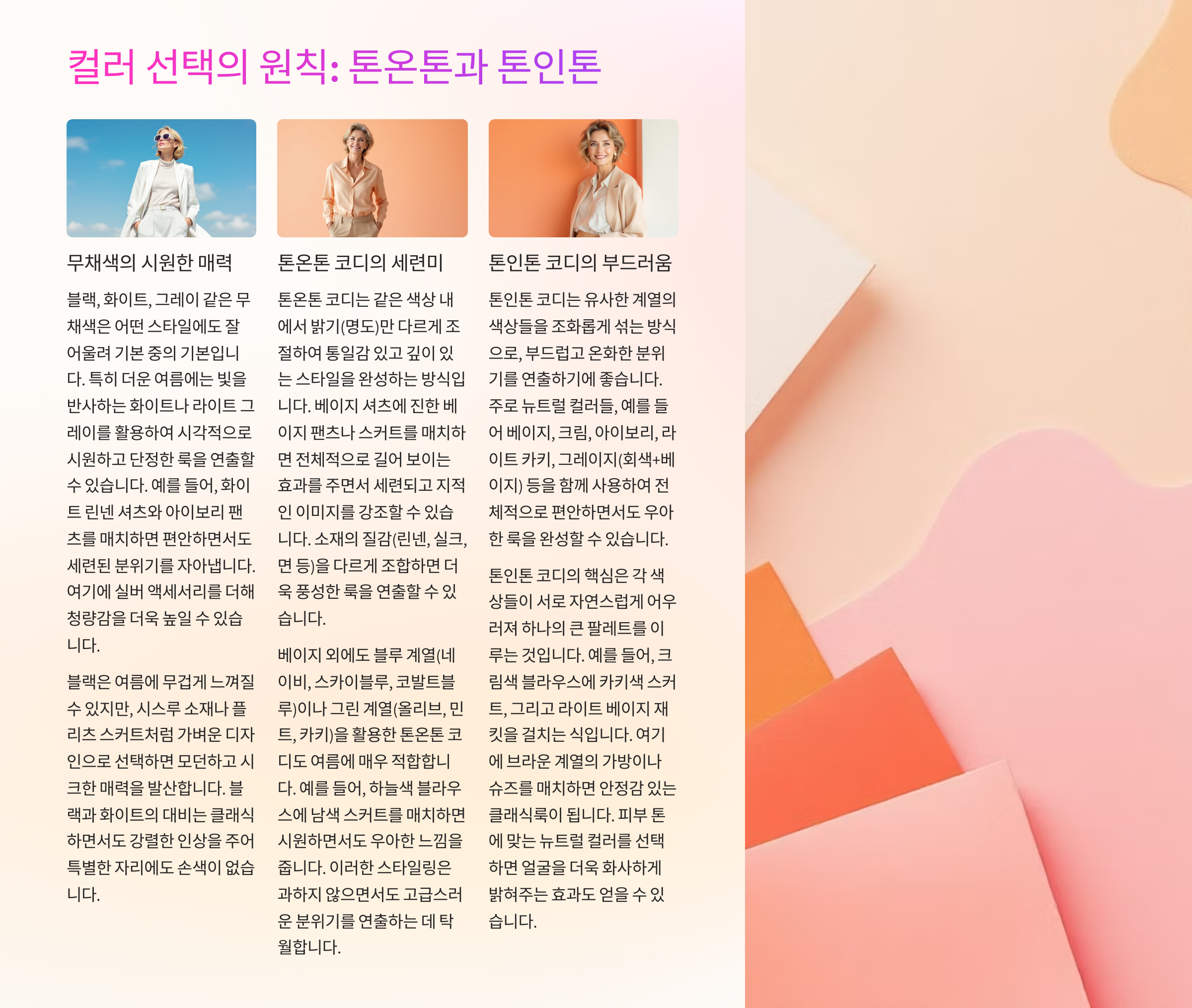 1. 컬러는 ‘톤온톤’ or ‘톤인톤’이 정답!