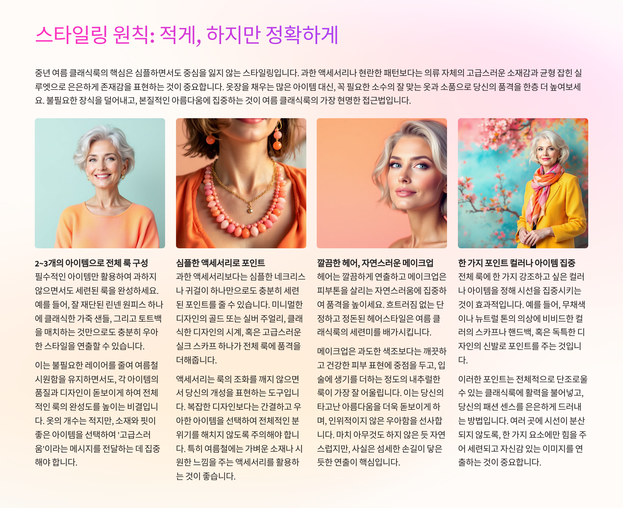 중년 여름 클래식룩 코디 공식 – 실패 없는 스타일링 노하우 총정리!