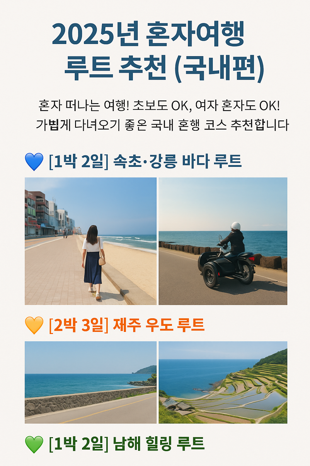 오늘은 2025년에 가기 딱 좋은 혼자 여행 국내 루트를 현실적이고 자세하게 추천해드릴게요.