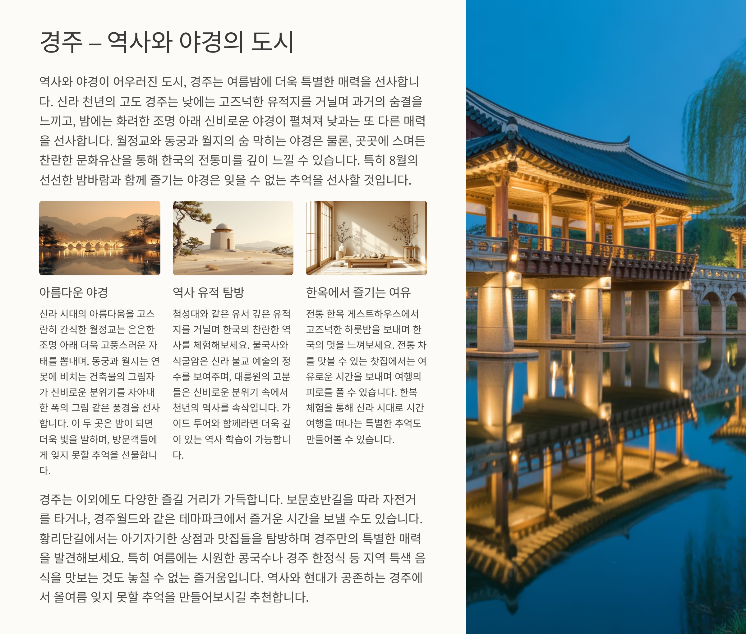 역사의 도시 경주는 언제 가도 멋진 곳이지만, 여름밤에 찾으면 그 매력이 배가 됩니다.