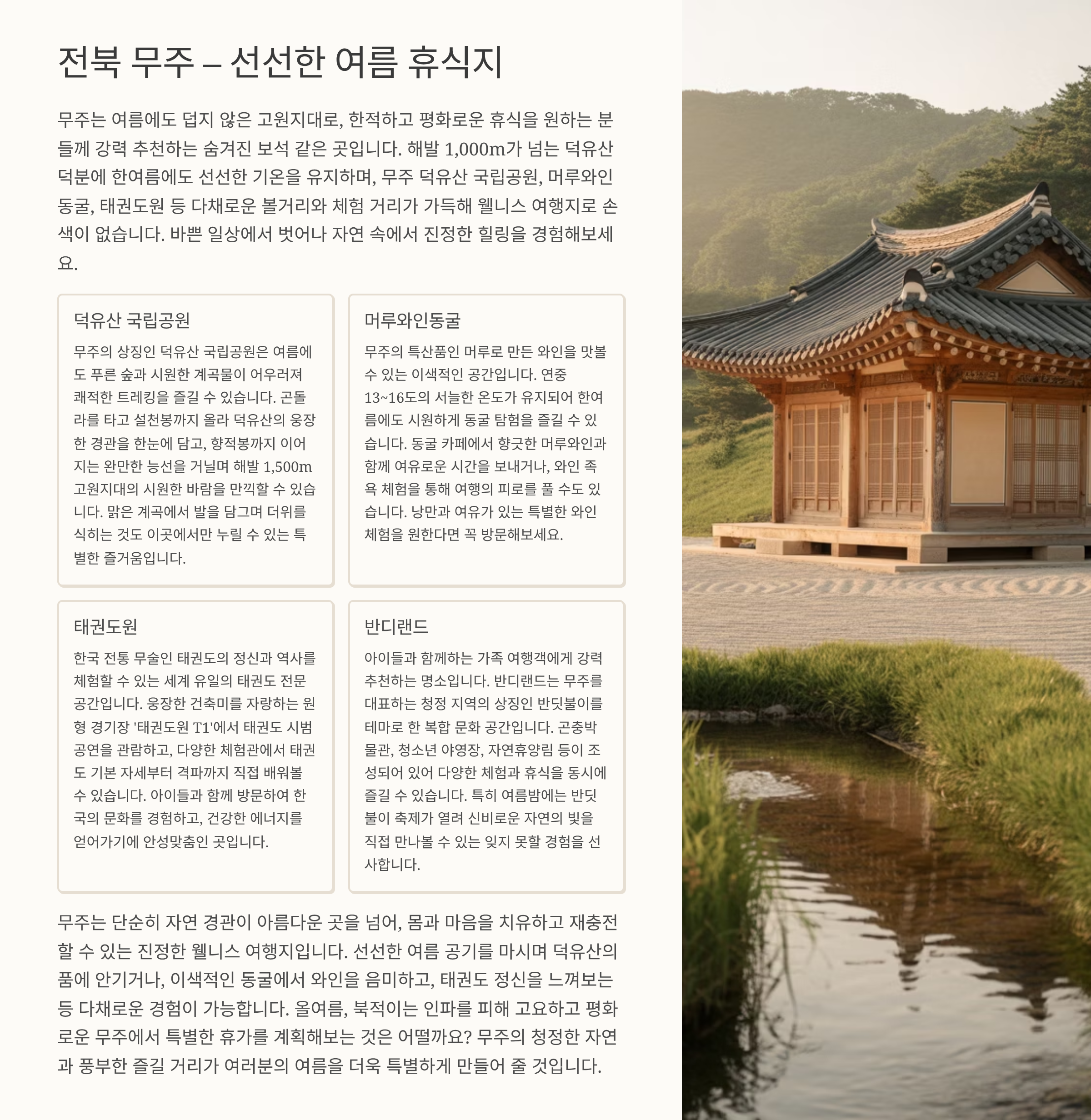 ☀️ 2025년 8월, 한 번쯤 꼭 떠나봐야 할 국내 여름 여행지 BEST를 정리해 봤습니다.