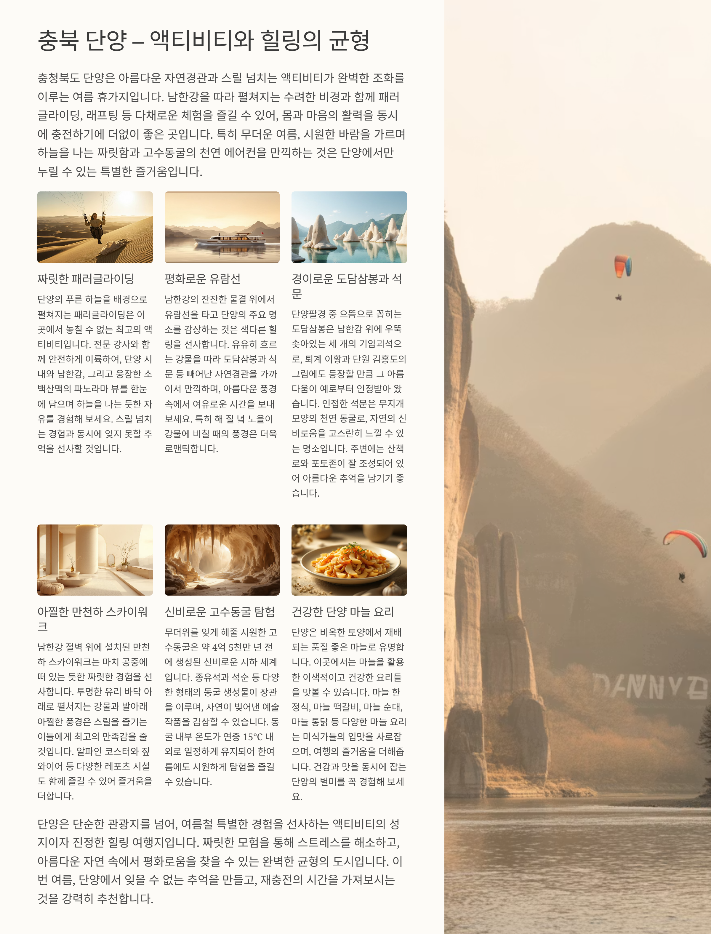 4. 충북 단양 – 액티비티와 힐링의 균형