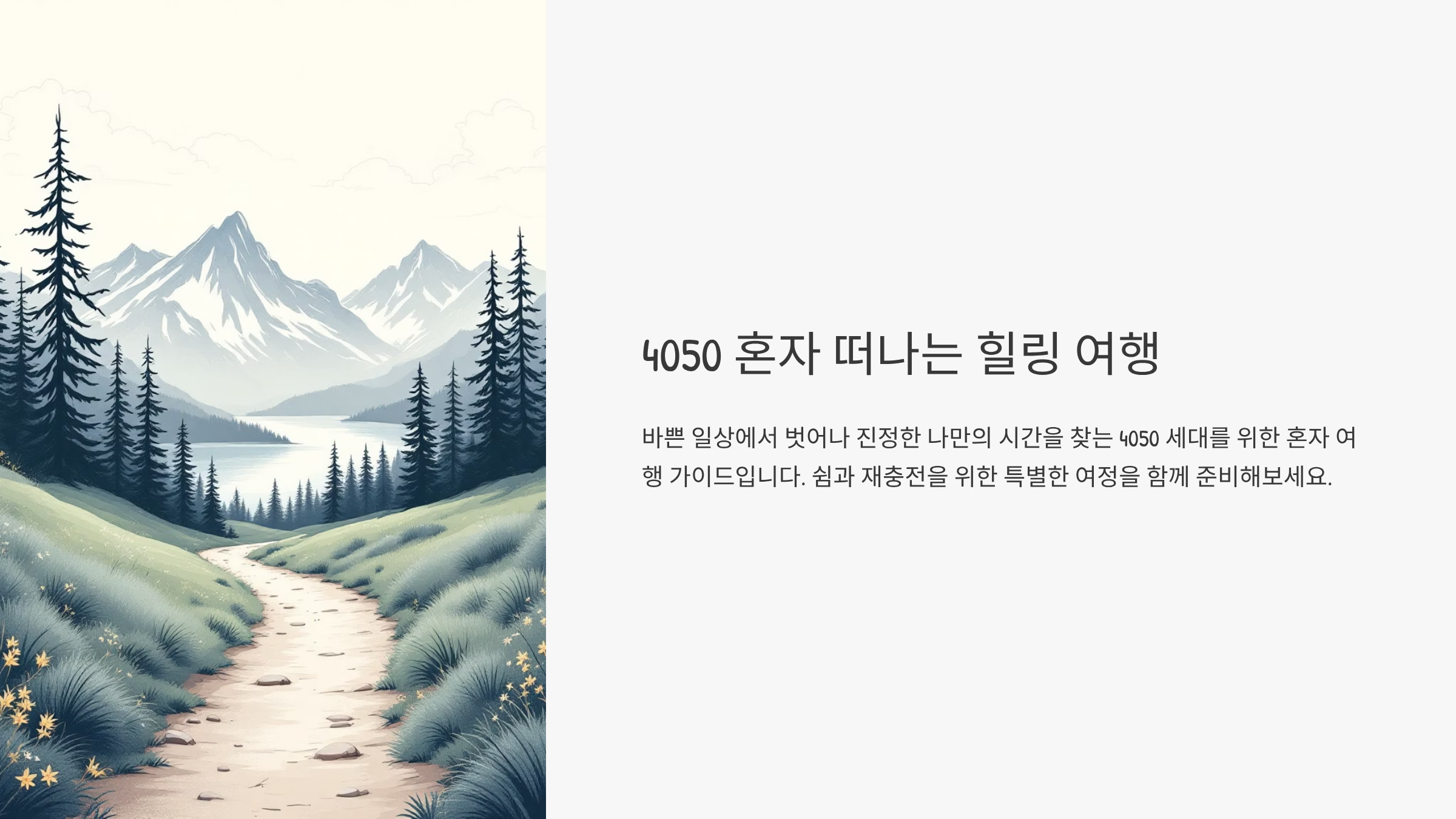지금 이 순간이 바로, 혼자 떠나기에 가장 좋은 타이밍일 수 있습니다. 주저하지 말고 당신만의 조용한 여정을 시작해 보세요.