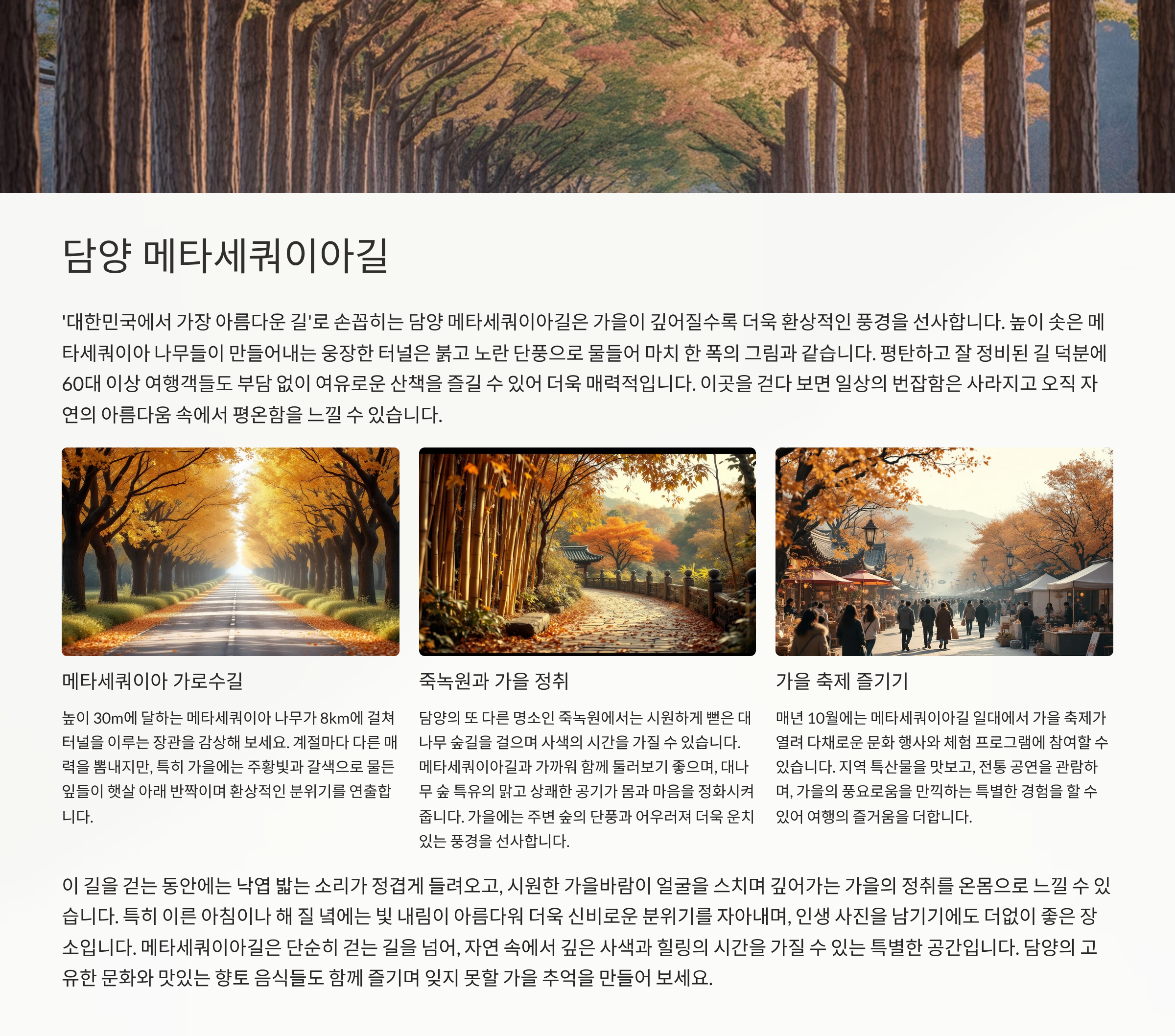 - 추천 키워드: 담양 여행지 추천, 메타세쿼이아길 단풍