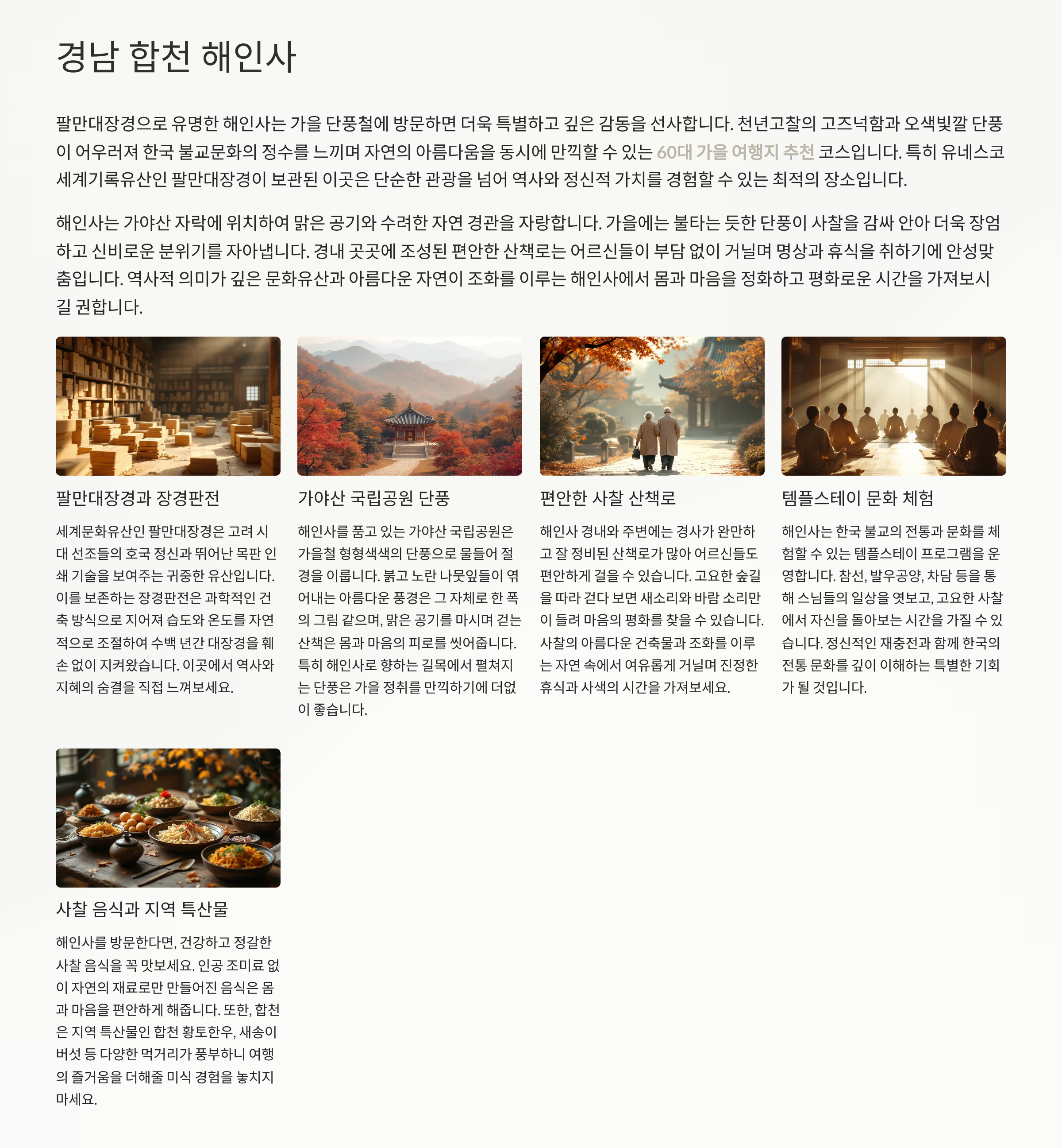 - 추천 키워드: 해인사 단풍, 합천 여행