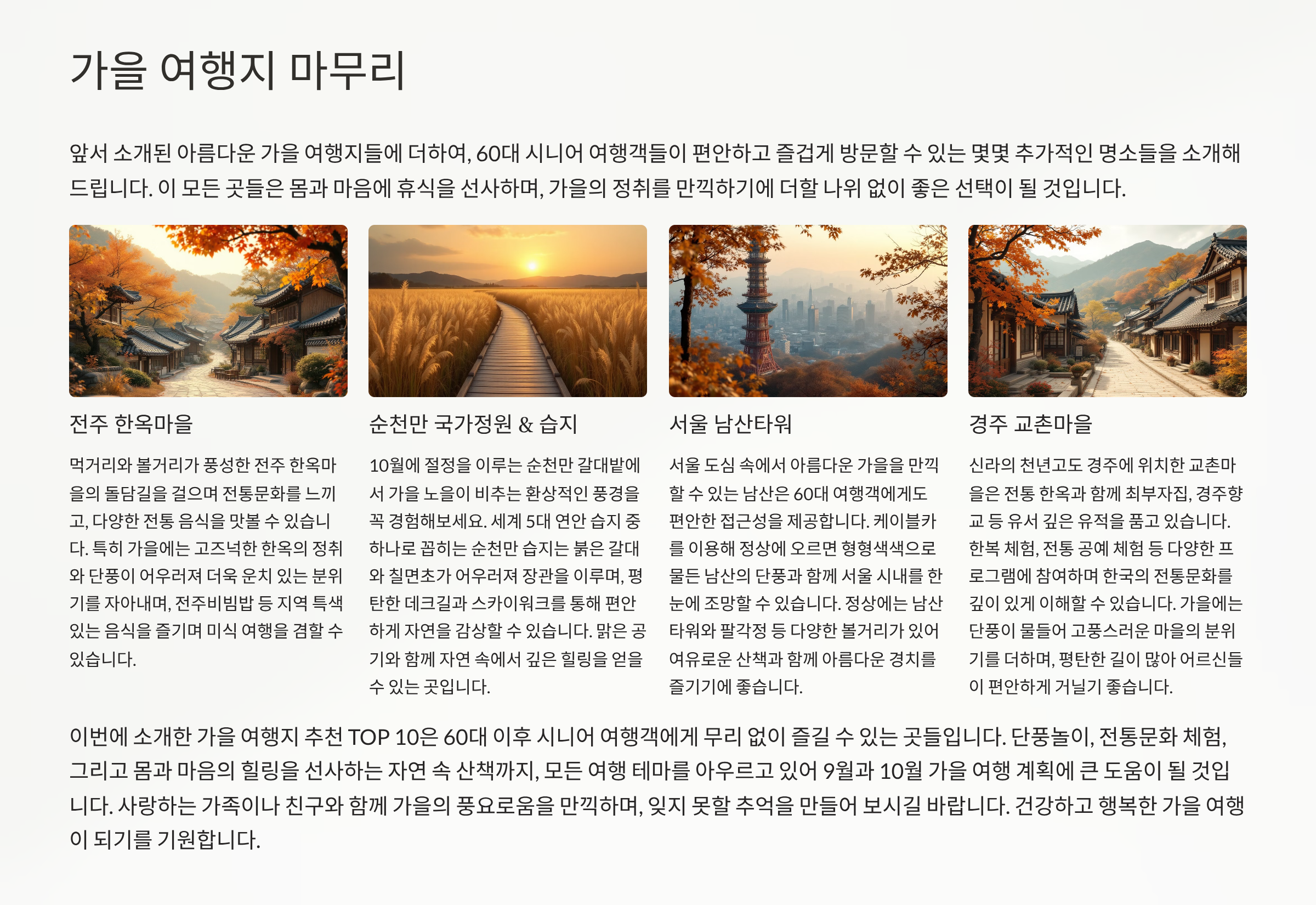 이번에 소개한 가을 여행지 추천 TOP 10은 60대 이후 시니어 여행객에게 무리 없이 즐길 수 있는 곳들입니다.