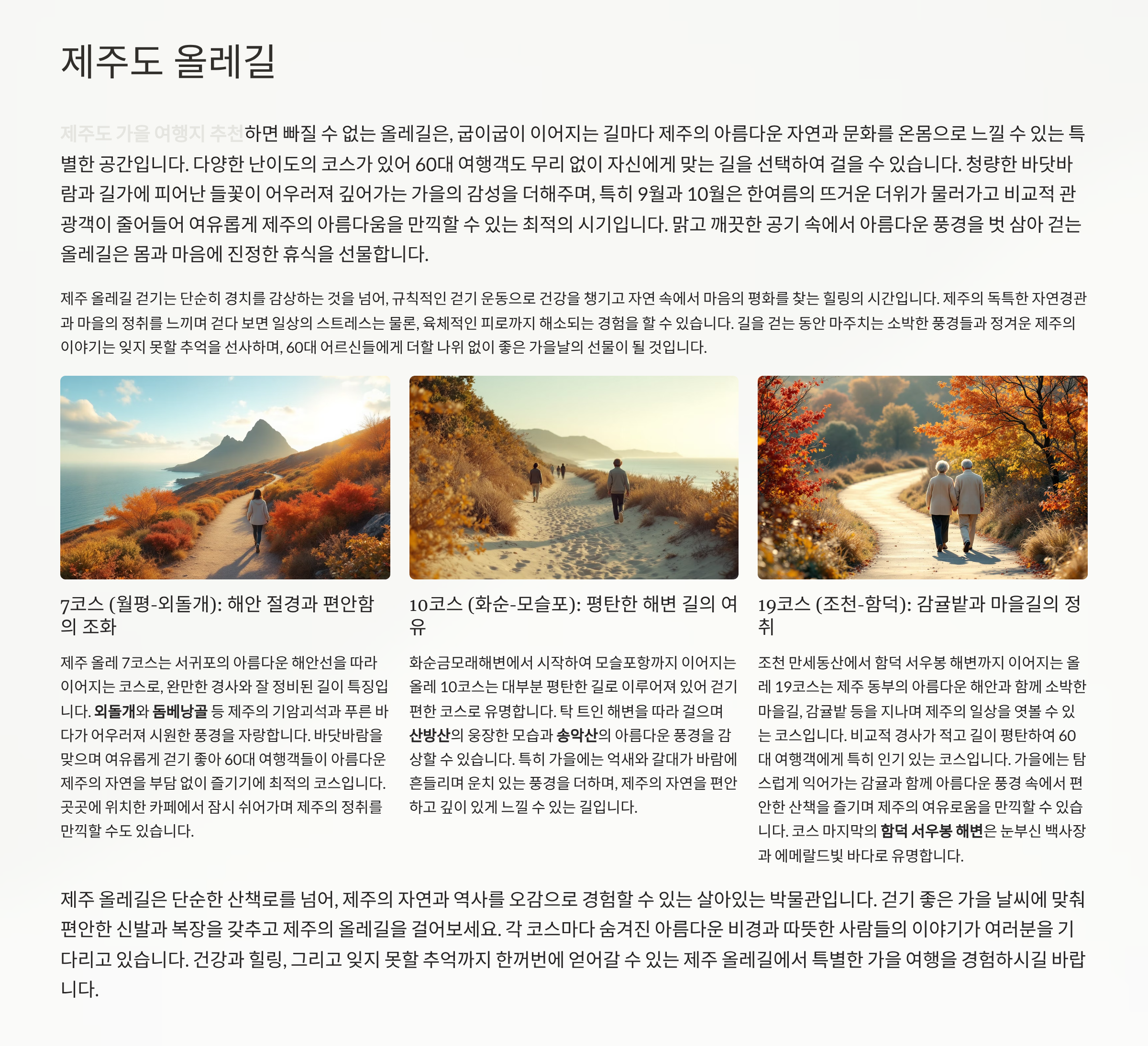 - 추천 키워드: 제주 올레길, 9월 제주 여행