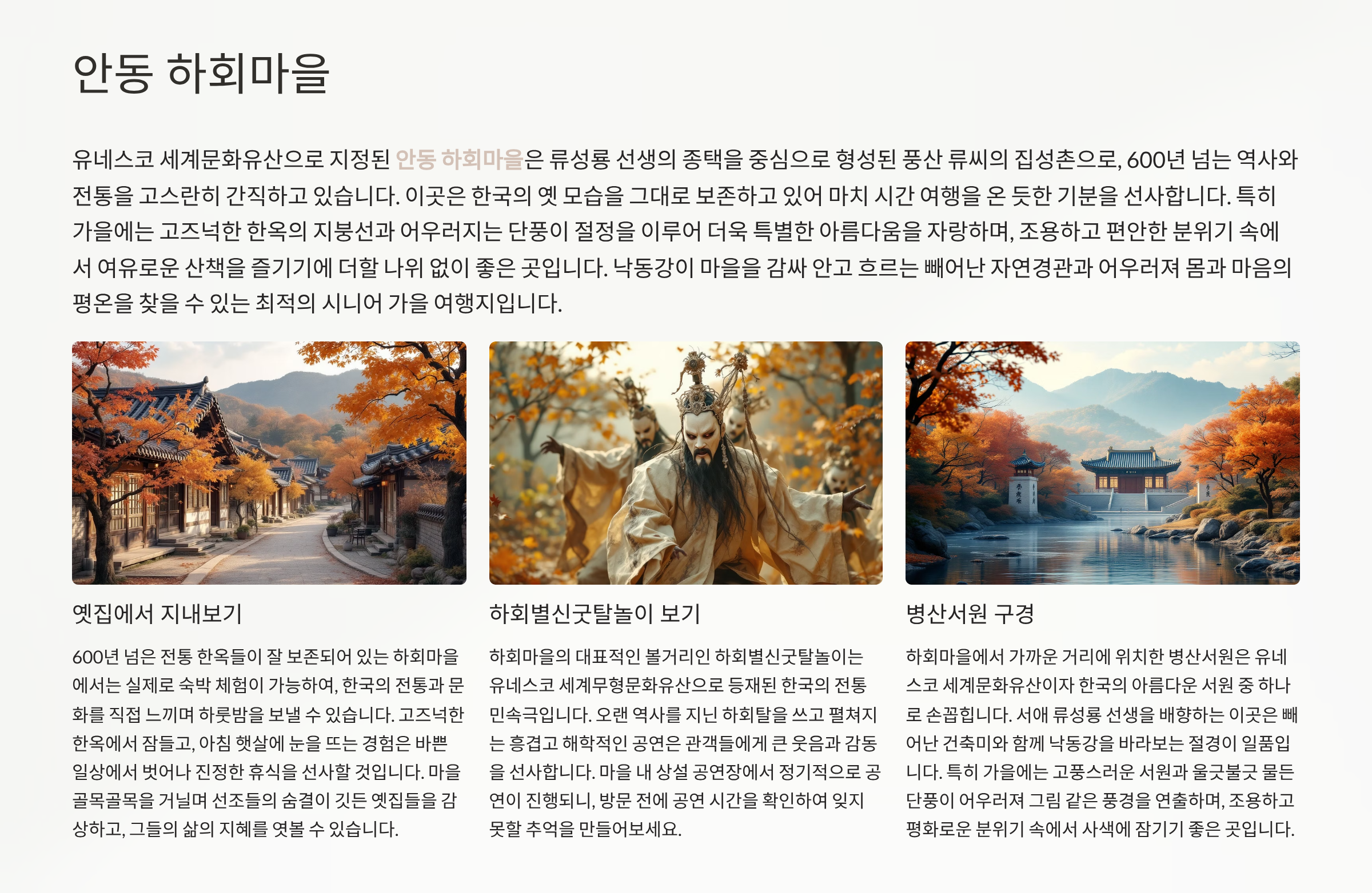 - 추천 키워드: 안동 여행, 전통문화 여행지