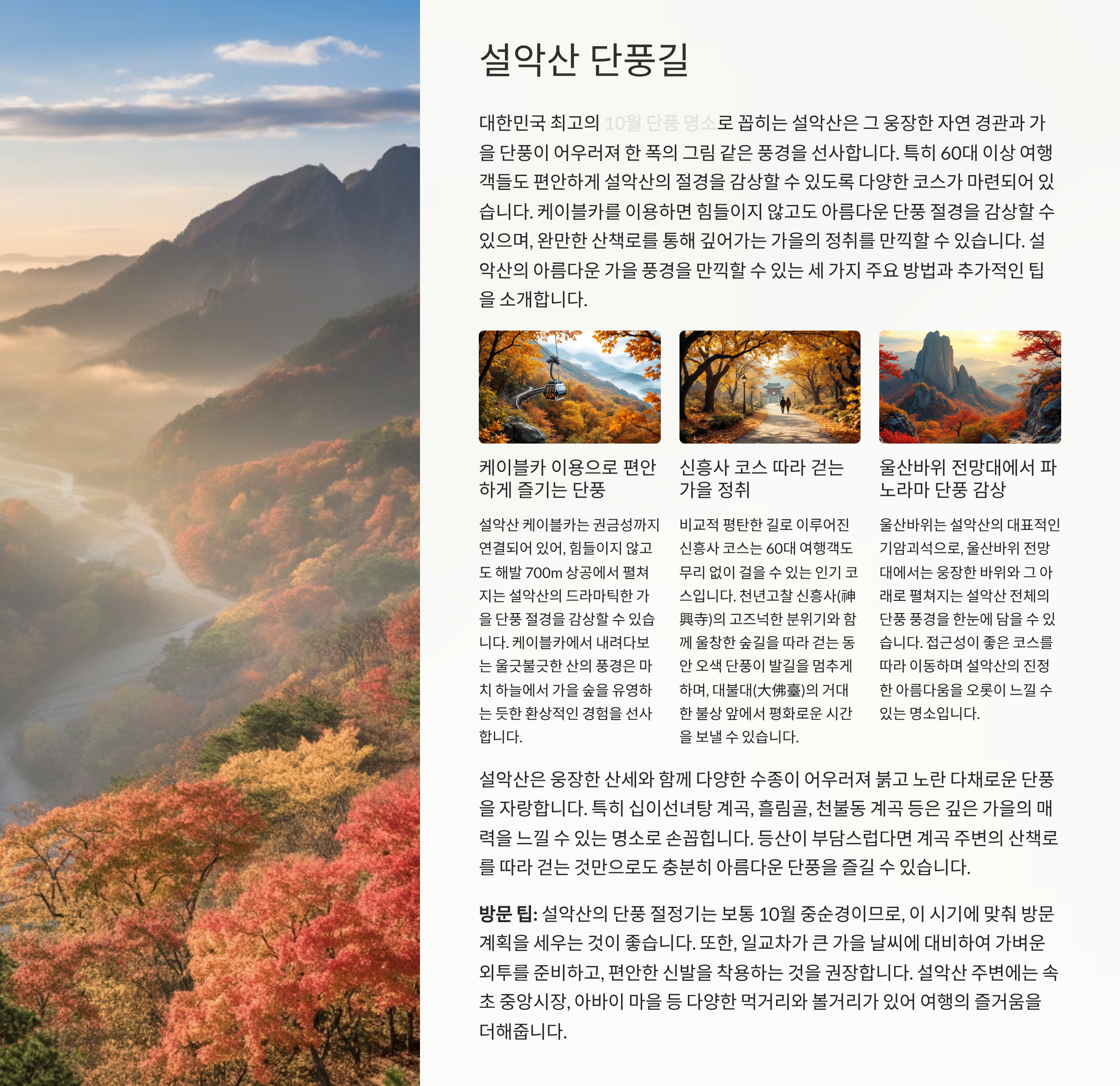 - 추천 키워드: 설악산 단풍, 10월 여행지 추천